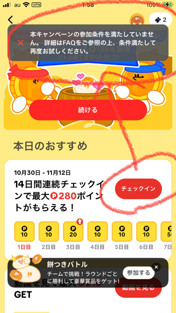 それとは話が変わるが去年の10月末あたりでiphone6sにてポイ活利用のTikTokライトにて『本キャンペーンの参加条件を満たしていません。詳細はFAQをご参照の上、条件満たして再度お試しください。』なるアラートが出て連打系のゲーム、およびLIVEコンテンツ以外の報酬が受け取れなくなった 藁藁(連打系のゲームに関しては最終の報酬がエラーが出て受け取れず。。。)