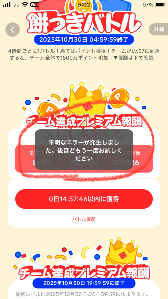 そして12月に入る頃には更に連打系のゲーム、およびLIVEコンテンツにてもエラー表示が出てそれすら無理ぽ。